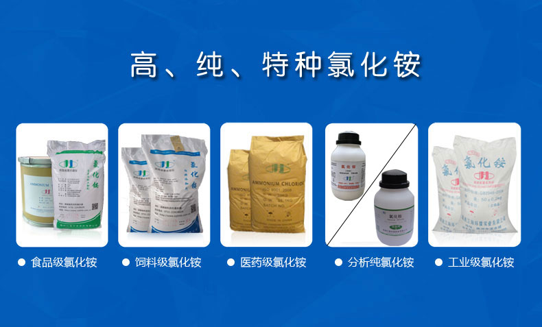 湖南江海環保實業有限公司圍繞環保、節能、資源綜合利用的科學理念,確立了依靠科技走精品路線,一直把高(高品質)、純(純度高)、特(特種用途)作為我產品的發展方向,我廠高純工業氯化銨主要包括分析級氯化銨醫藥級氯化銨食品添加劑氯化銨飼料添加劑氯化銨電子級氯化銨電池級氯化銨精制型低鉀鈉氯化銨,并獲得了食品衛生許可證、美國kosher認證等一系列質量認證,通過了SGS第三方、及省市檢驗機構的多重檢測。